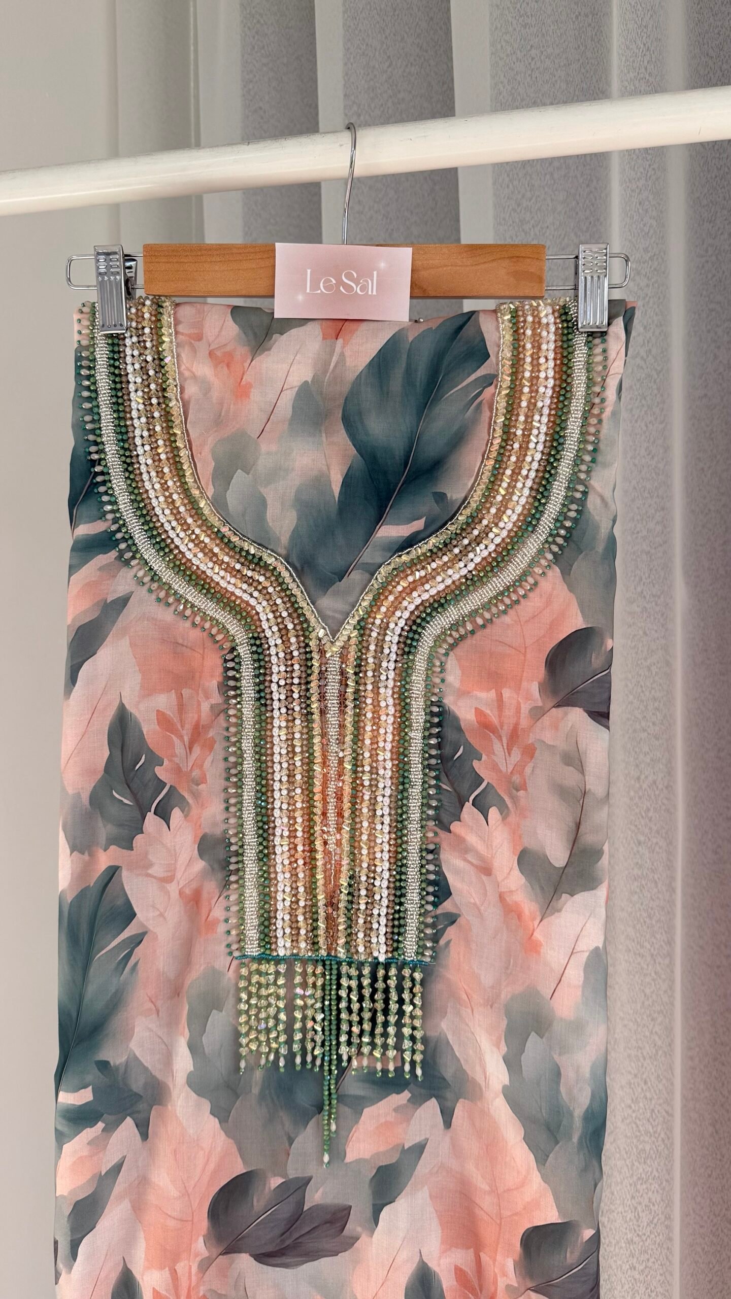 *Hand wash or use a laundry service to preserve the beadwork
