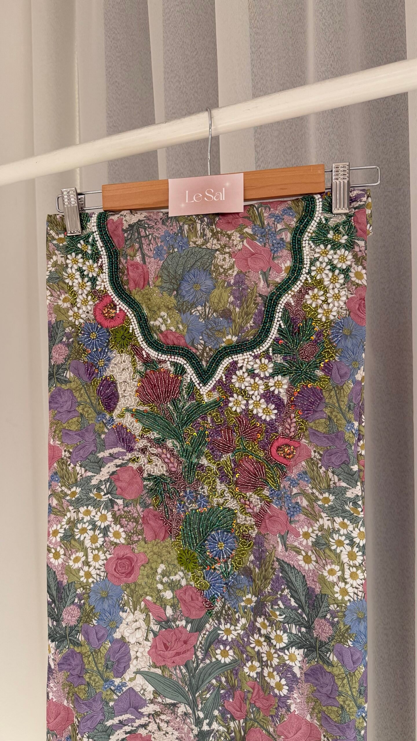 *Hand wash or use a laundry service to preserve the beadwork