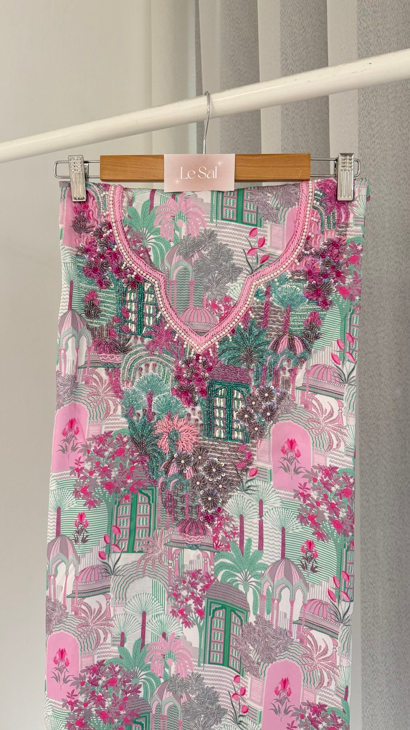 *Hand wash or use a laundry service to preserve the beadwork